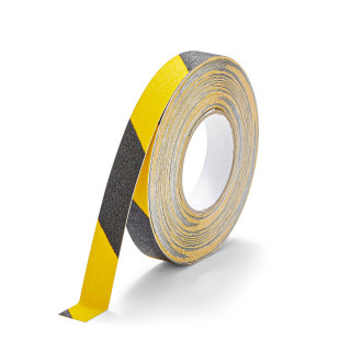 Adhesive Anti-Skid tape yellow/black, 25mm x 5m provides effective protection against slipping on wet, sloped, and highly slippery surfaces, reducing the risk of falls and injuries. Thanks to its self-adhesive backing, it allows for quick and easy installation without the need for additional tools, enhancing space safety effortlessly.