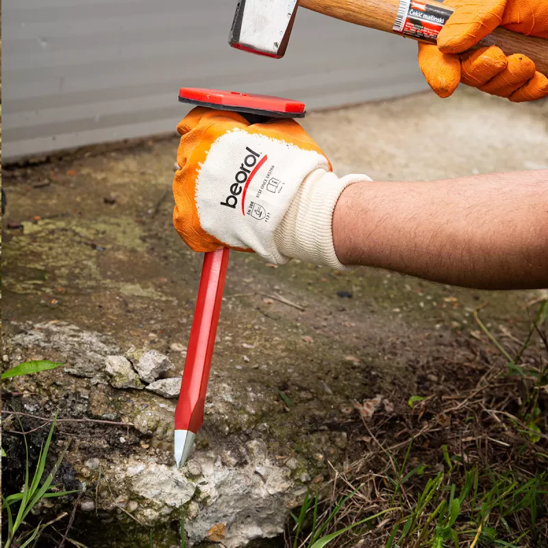 Hexagon point chisel, 300x18mm is a tool designed for manual chiseling of concrete and brick, ideal for construction industry tasks. The chisel body is made of reinforced carbon steel, contributing to its long-term durability and resistance to harsh working conditions. The handle, made of durable plastic, has an ergonomic design that minimizes vibration transfer to the hand, making work more comfortable.