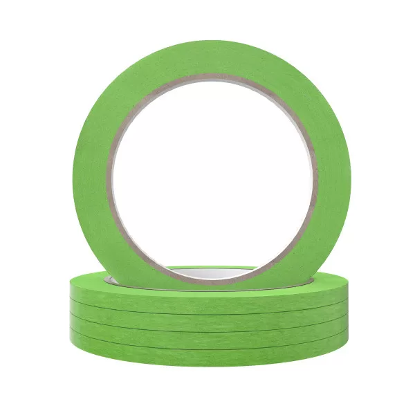 Masking tape for decorative works 5mm x 33m is used for creating travertine effects, separating joints during the creation of edge effects, or imitating planks and similar designs. The tape features natural rubber adhesive and elastic paper. Removing the tape during the semi-dry material phase allows for clean tape removal and precise joint lines. It is intended for professional and semi-professional painters as well as hobbyists. Temperature resistance is 60°C for 45 minutes. Paper thickness is 125 microns. Color: Green.