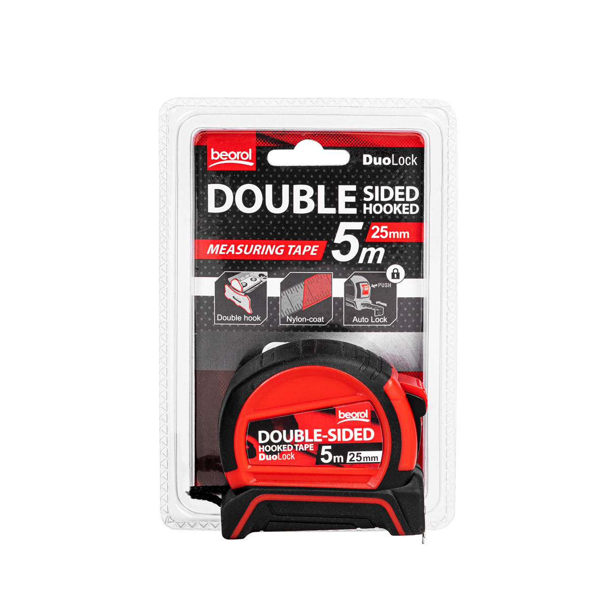 Double-sided-hooked meter 5 m is a reliable measuring tool designed for professionals and hobbyists alike.