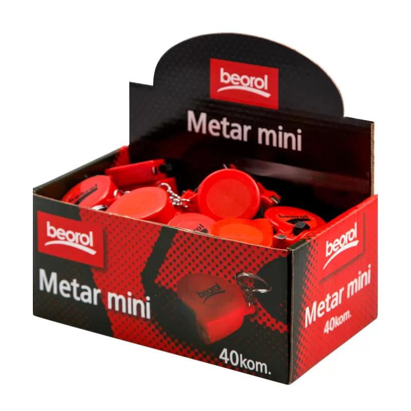 This mini measuring tape comes in the form of a keychain and is sold in a pack of 40 pieces inside an attractive POS box, making it an ideal option for promotions or as a handy tool in everyday use.