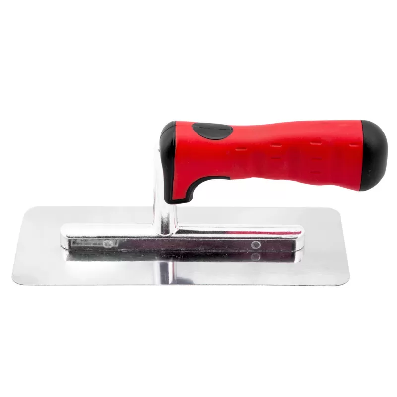 Plastering trowel rubber-plastic handle, 200x80mm is designed for the application and processing of decorative materials. Made from stainless steel, this trowel features a 0.7mm thick flat blade with rounded edges, ensuring smooth and even application. The two-component handle, crafted from PVC plastic and rubber, provides a comfortable, non-slip grip, reducing hand fatigue during extended use. Its middle-positioned handle allows for optimal control and maneuverability, making it an ideal tool for detailed decorative work.