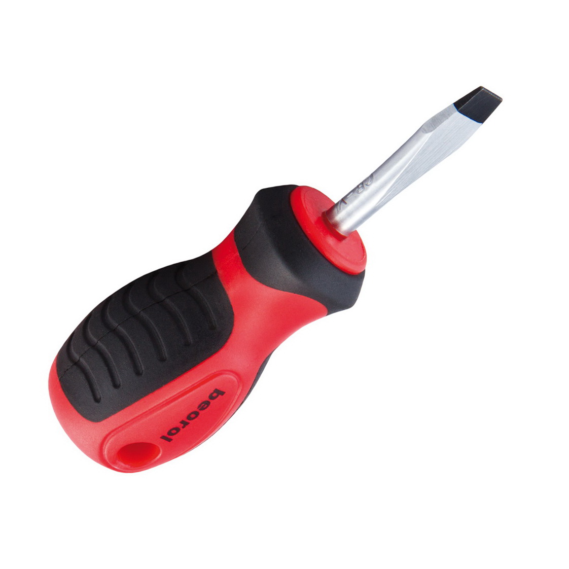 Screwdriver SL 6.5x38 is designed for tightening and loosening screws with the appropriate SL fitting. The handle is made of high-durability plastic and soft rubber, ensuring a secure and comfortable grip. The tip is additionally hardened and magnetized, made of Cr-V steel, providing long-lasting performance and high efficiency. The length of the screwdriver is 38mm, and the tip is SL6.5.